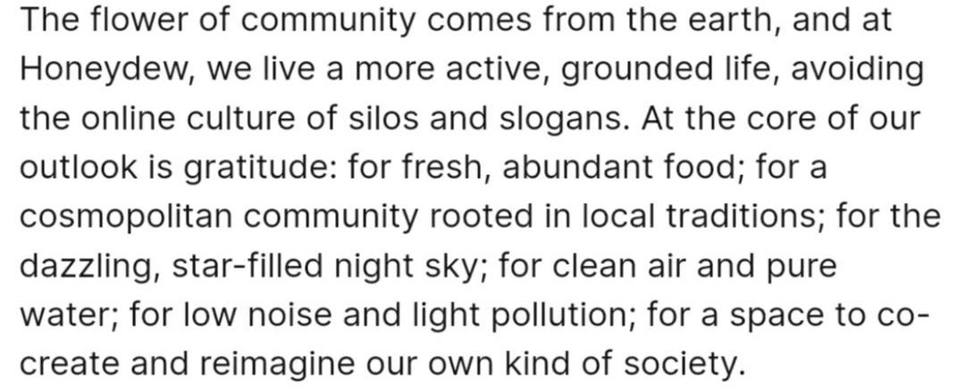 We hope that you’ll join us for one of these events, and help promote our vision for a renaissance in communal living. (Please consider gifting one of the tier perks to a friend or family member.) If you’d like to visit us, volunteer, or contribute in any other way, please don’t hesitate to contact me at benjamin@honeydew.community.